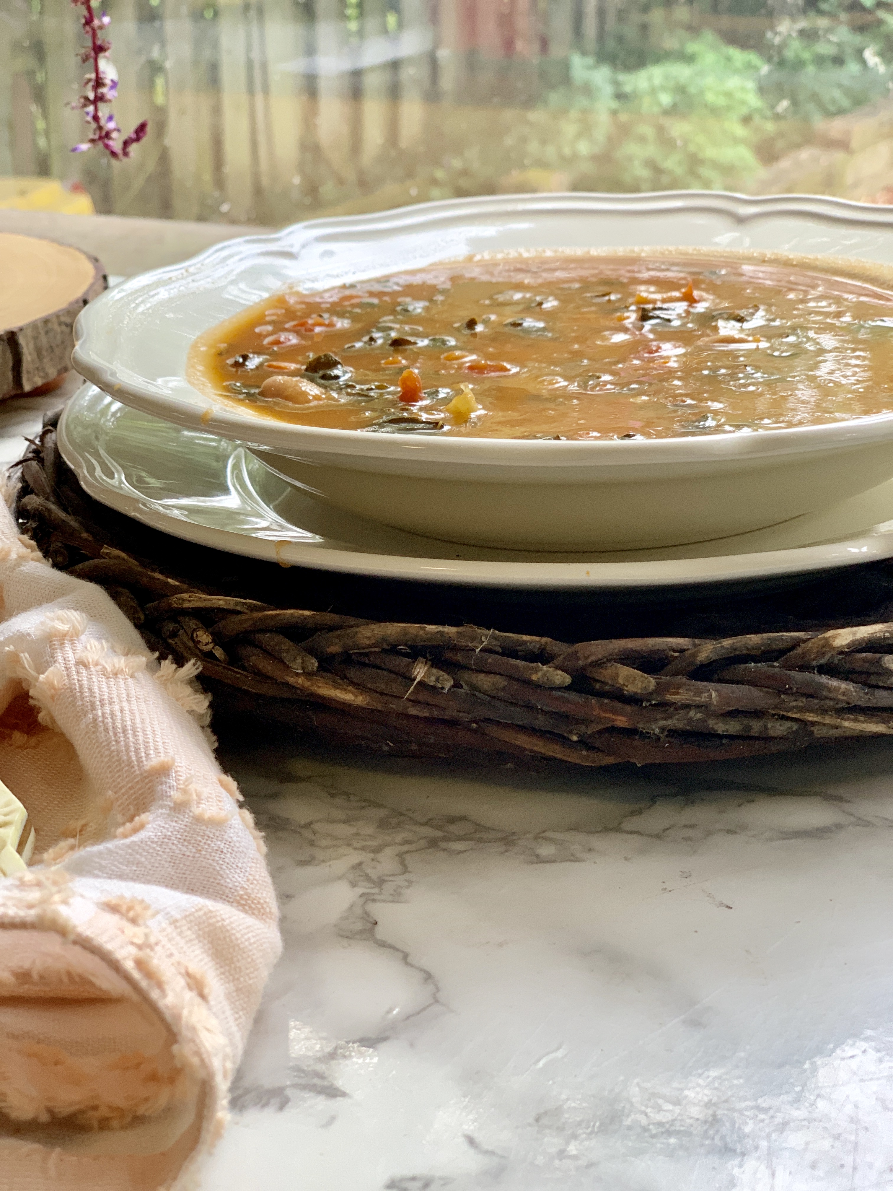 Add the kale and simmer another 10 minutes until the kale is tender and the soup is fragrant. Taste, adjust salt and pepper. Stir in the beans and heat through for 5 minutes.